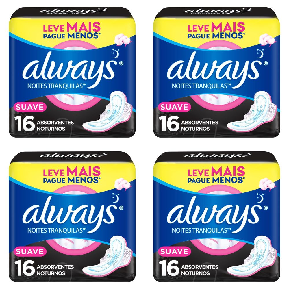 Kit c/4 Absorventes Cobertura Suave Noturno Com Abas Always Simples 16 Unidades cada