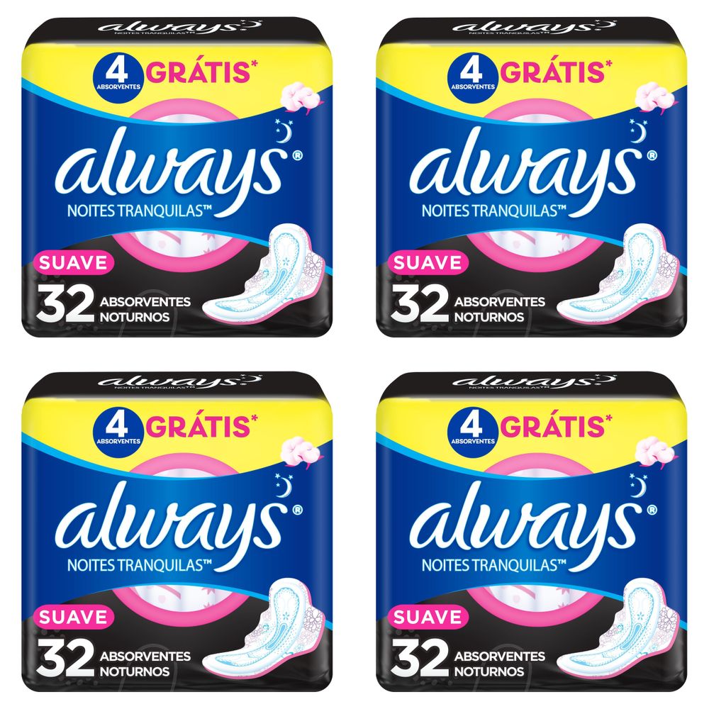 Kit c/4 Absorventes Cobertura Suave Noturno Com Abas Always Simples 32 Unidades cada