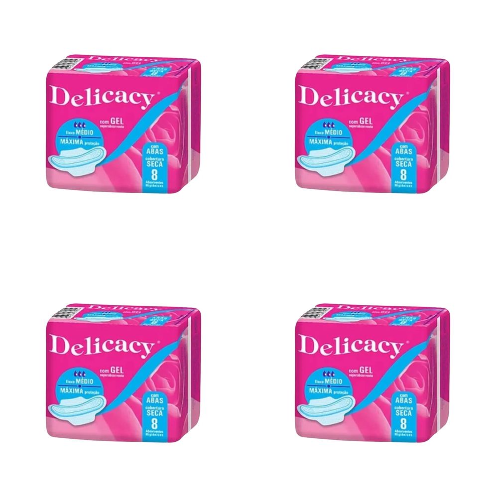Kit c/4 Absorventes Delicacy C/ Abas Seca Gel c/8 Unidades cada