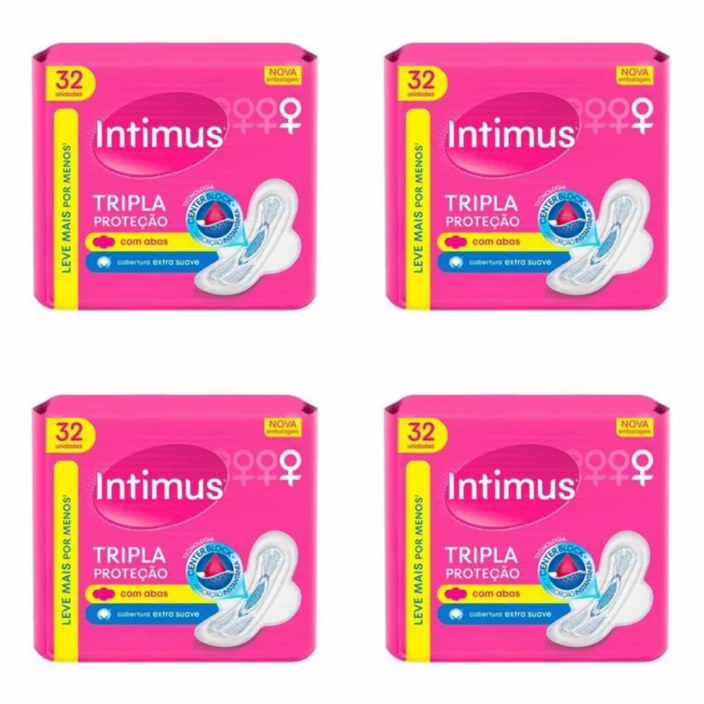 Kit c/4 Absorventes Intimus Tripla Suave Com Abas 32 Unidades