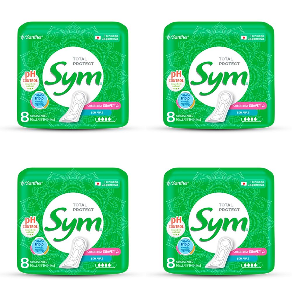 Kit c/4 Absorventes Sym Suave Sem Abas c/8 Unidades cada