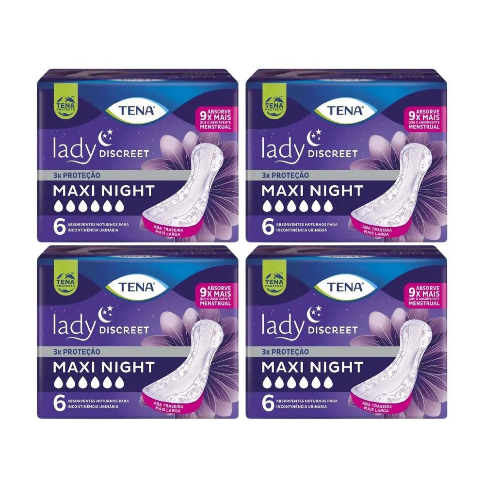 Kit c/4 Absorventes Tena Lady Discreet Maxi Night c/6 Unidades cada