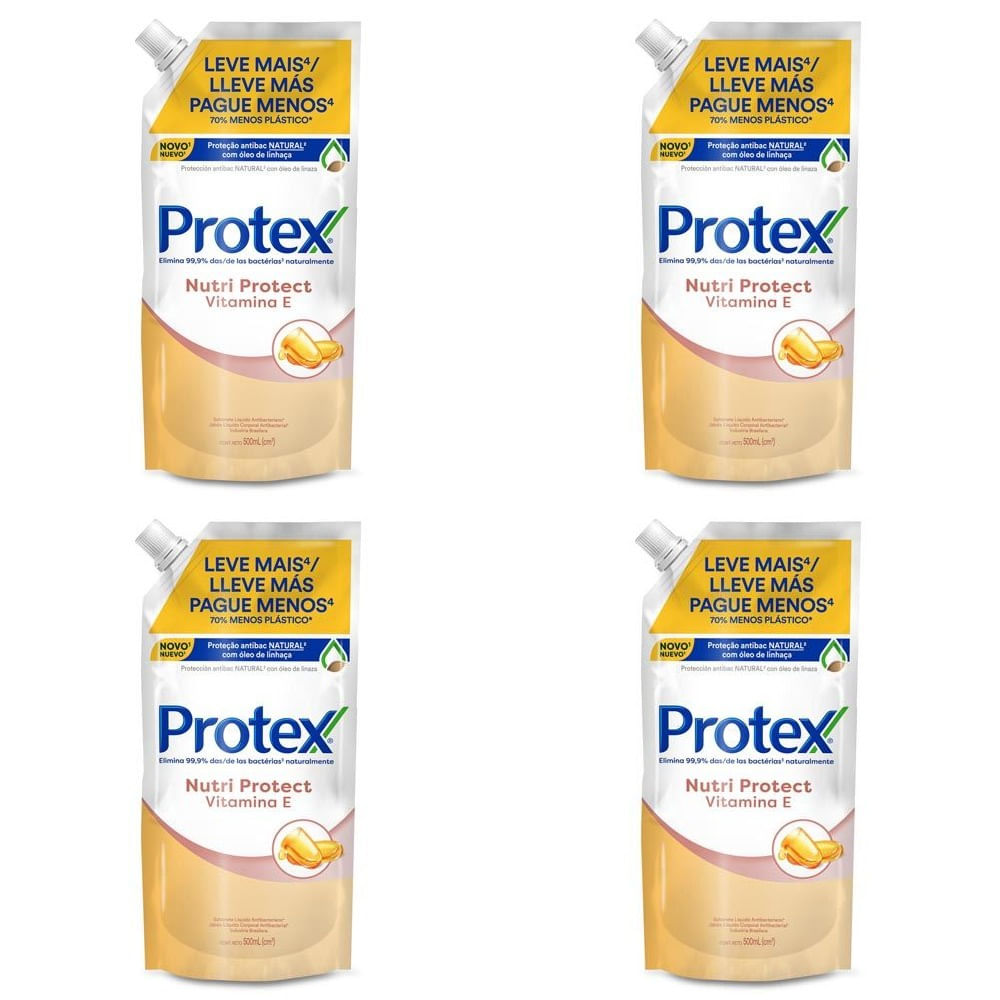 Kit c/4 Sabonete Líquido Protex Nutri Protect Vitamina E 500ml Refil