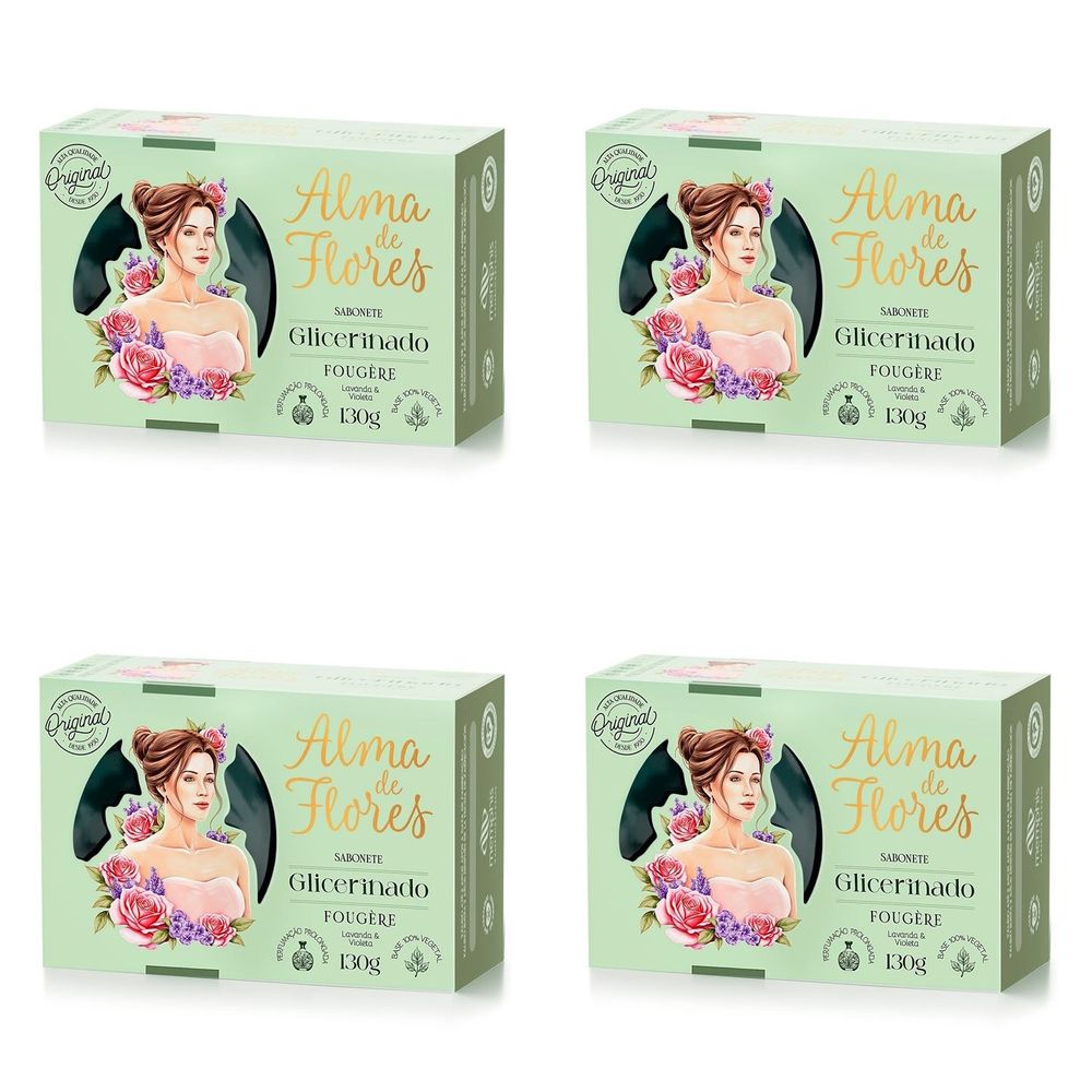 Kit c/4 Sabonetes Alma De Flores Glicerinado 130g Fougere