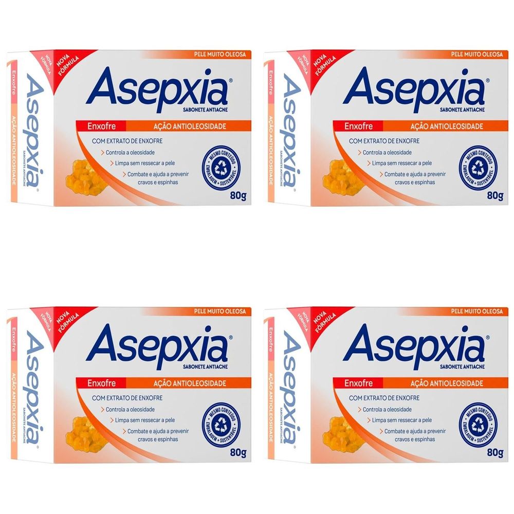 Kit c/4 Sabonetes Asepxia Barra 80g Enxofre