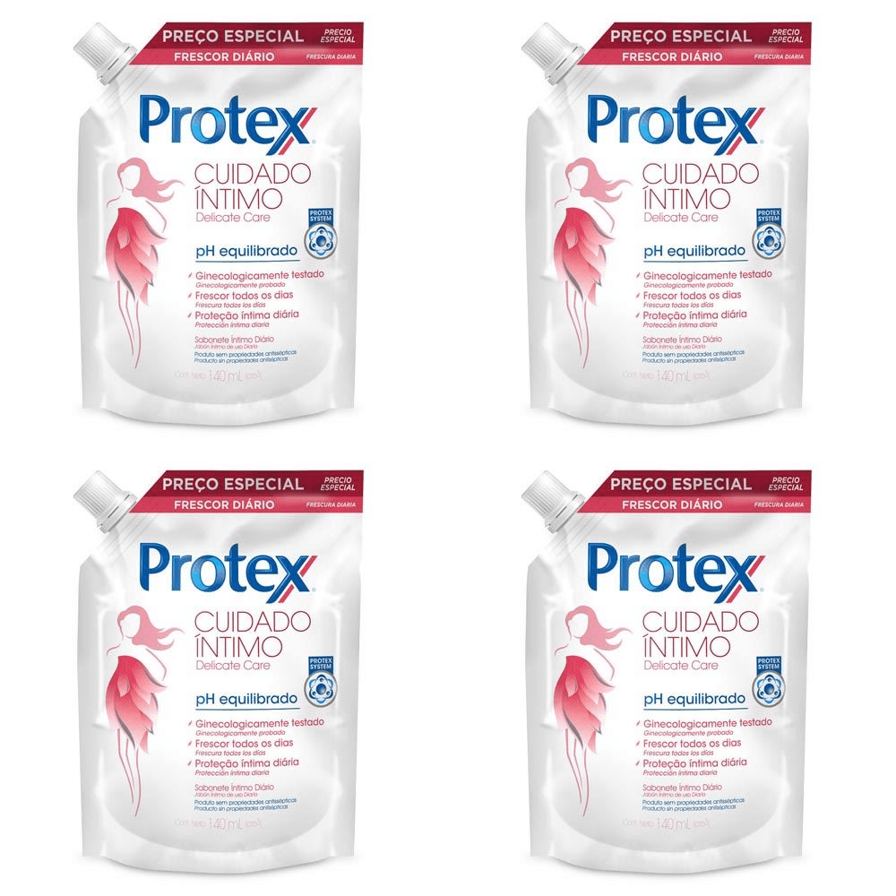 Kit c/4 Sabonetes Íntimo Líquido Protex Delicate Care 140ml Refil