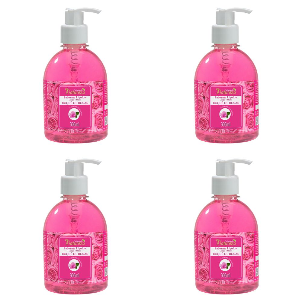 Kit c/4 Sabonetes Líquido Aromatica S.Natureza Buque Rosas 300ml cada
