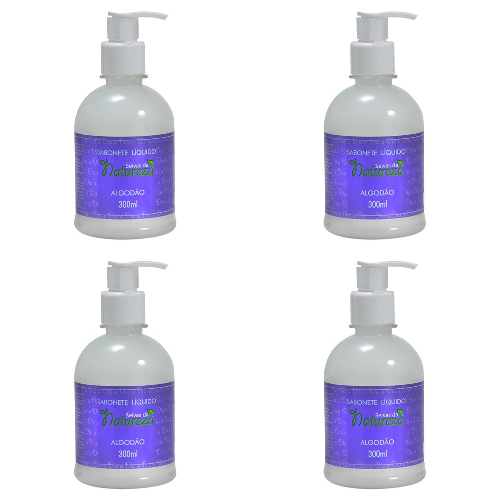 Kit c/4 Sabonetes Líquido Aromatica Seivas da Natureza Algodão 300ml cada