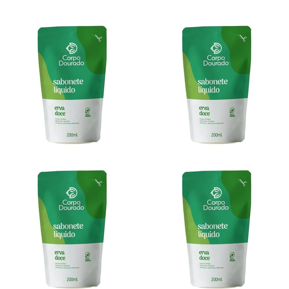 Kit c/4 Sabonetes Líquido Corpo Dourado Pouch 200ml Erva Doce