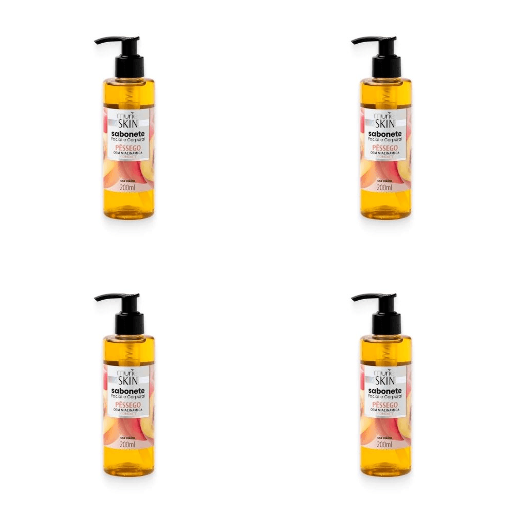 Kit c/4 Sabonetes Líquido Facial Corporal Muriel Skin Pêssego 200ml
