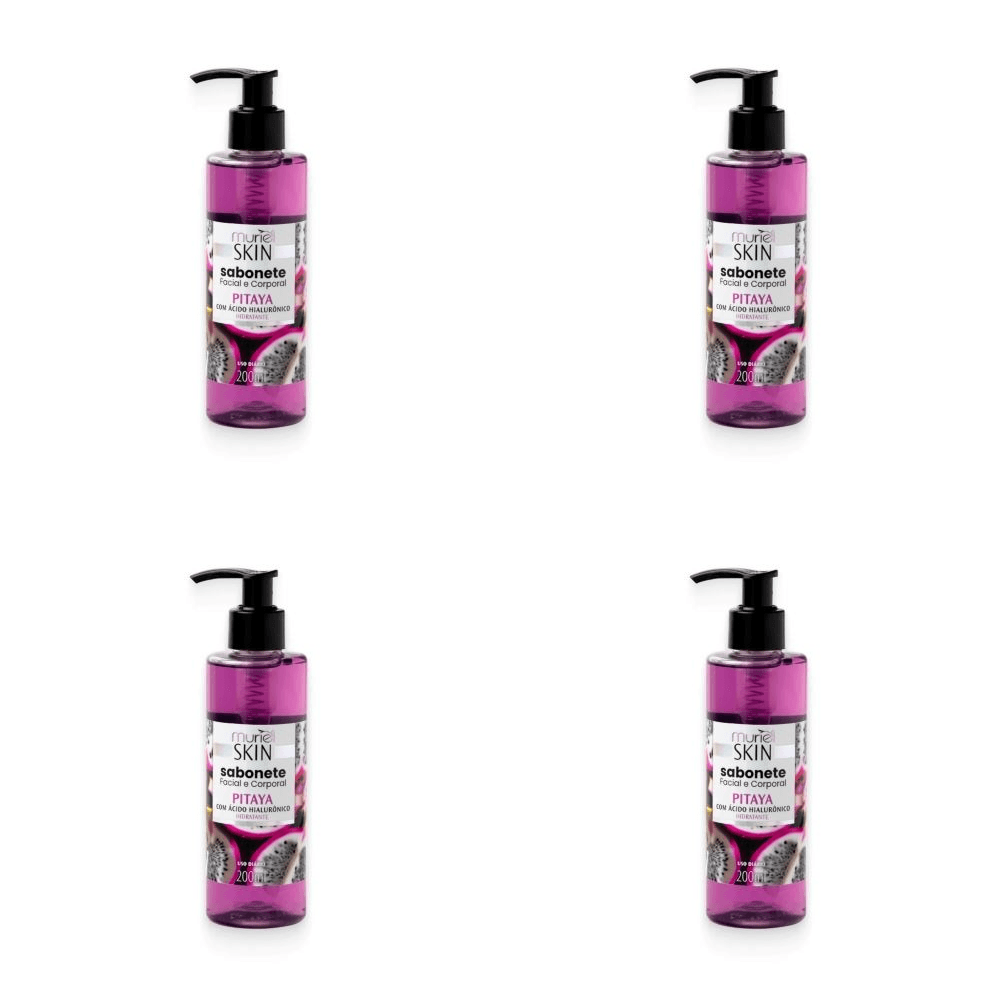 Kit c/4 Sabonetes Líquido Facial Corporal Muriel Skin Pitaya 200ml