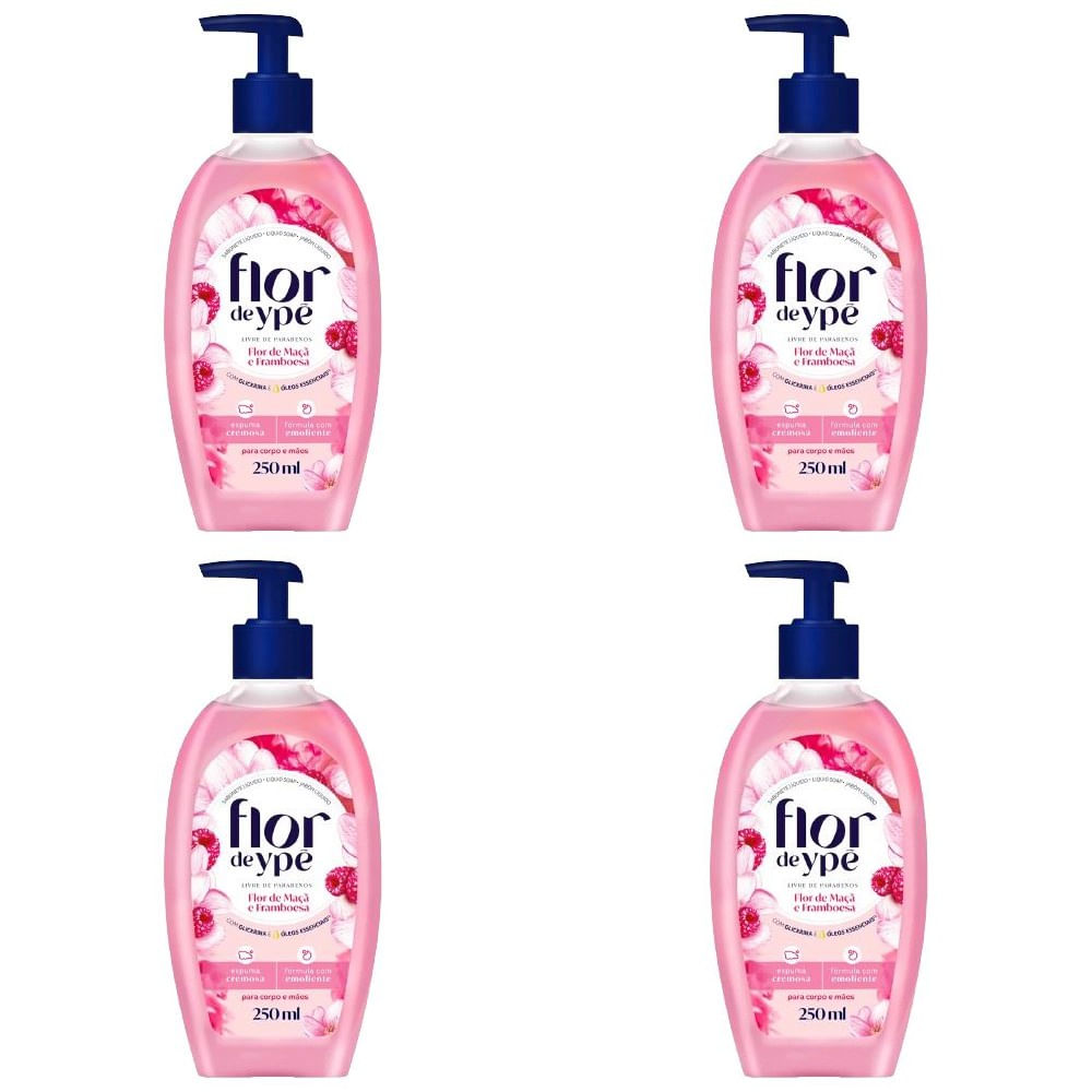 Kit c/4 Sabonetes Líquido Flor De Ype 250ml Flor De Macã E Framboesa