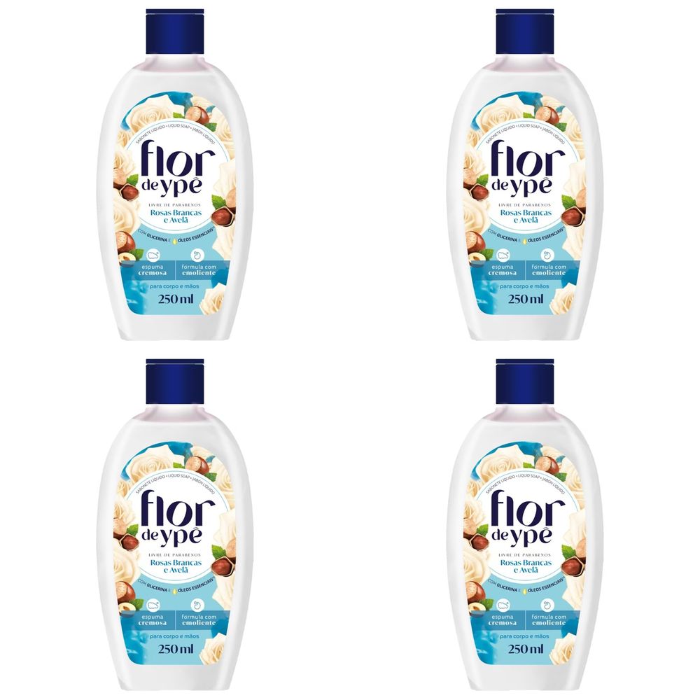 Kit c/4 Sabonetes Líquido Flor De Ype 250ml Rosas Brancas E Avelã
