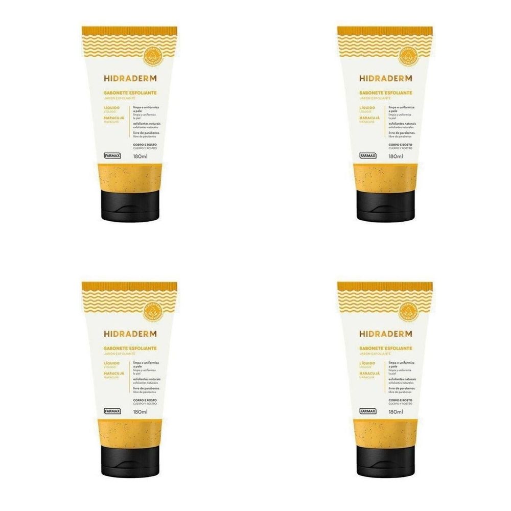 Kit c/4 Sabonetes Liquido Hidraderm Esfoliante 180ml Maracujá