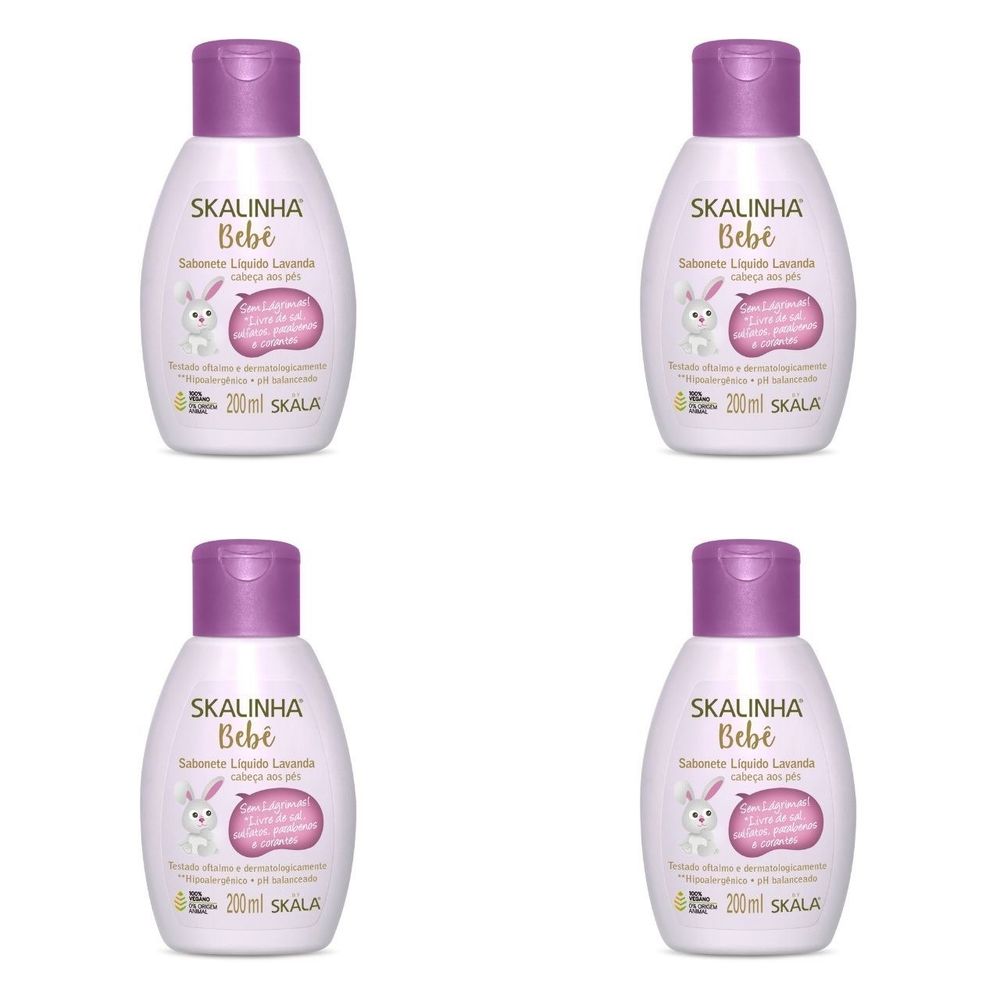 Kit c/4 Sabonetes Liquido Infantil Skalinha Bebê 200ml