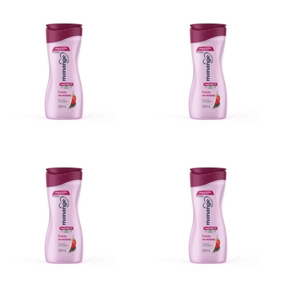 Kit c/4 Sabonetes Liquido Monange 240ml Frutas Vermelhas