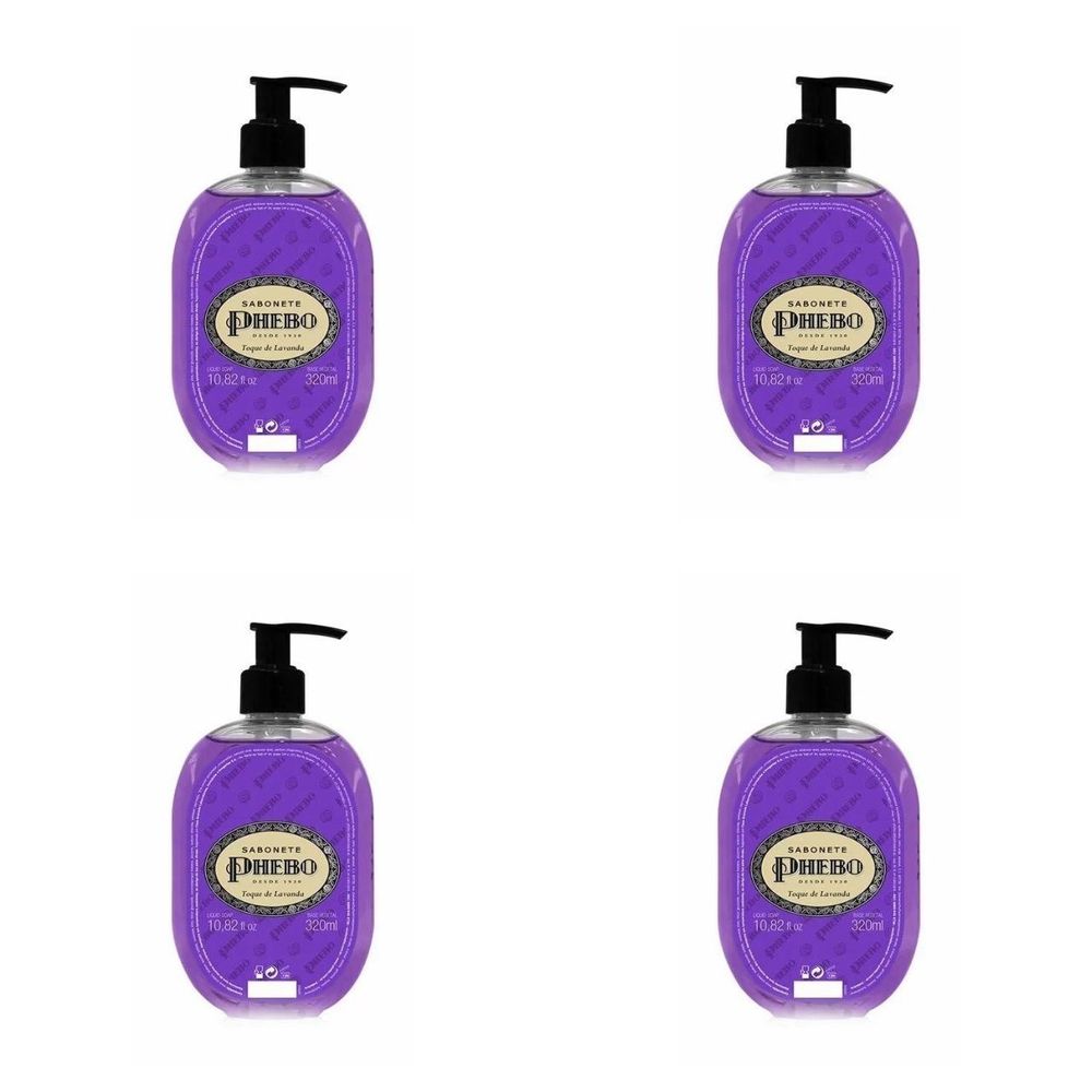 Kit c/4 Sabonetes Liquido Phebo Odor De Rosas 320ml Toque De Lavanda