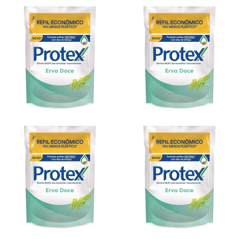 Kit c/4 Sabonetes Líquido Protex Refil 200ml Erva Doce