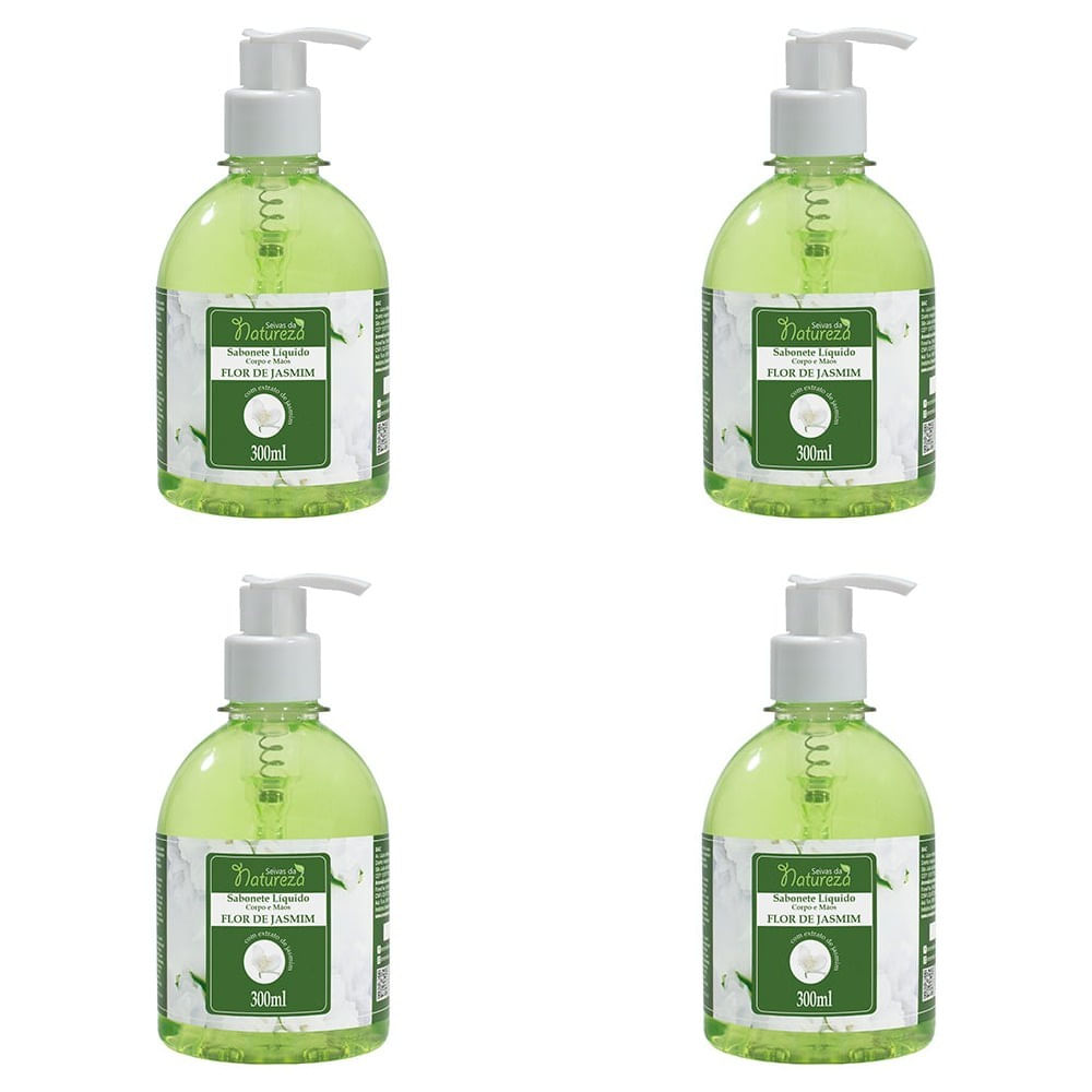 Kit c/4 Sabonetes Líquido Seivas da Natureza 300ml Flor de Jasmim 300ml cada