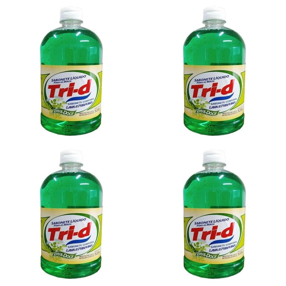 Kit c/4 Sabonetes Liquido Tri-D 1L Para Mãos Erva Doce