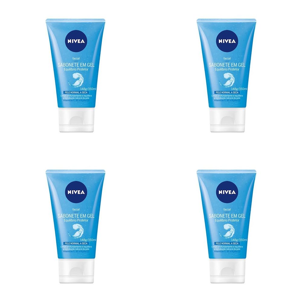 Kit c/4 Sabonetes Nivea Em Gel Facial Equilíbrio Nutritivo Com 150ml