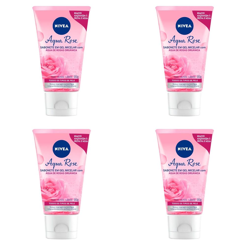 Kit c/4 Sabonetes Nivea Micellair Gel Facial Água De Rosas 150ml