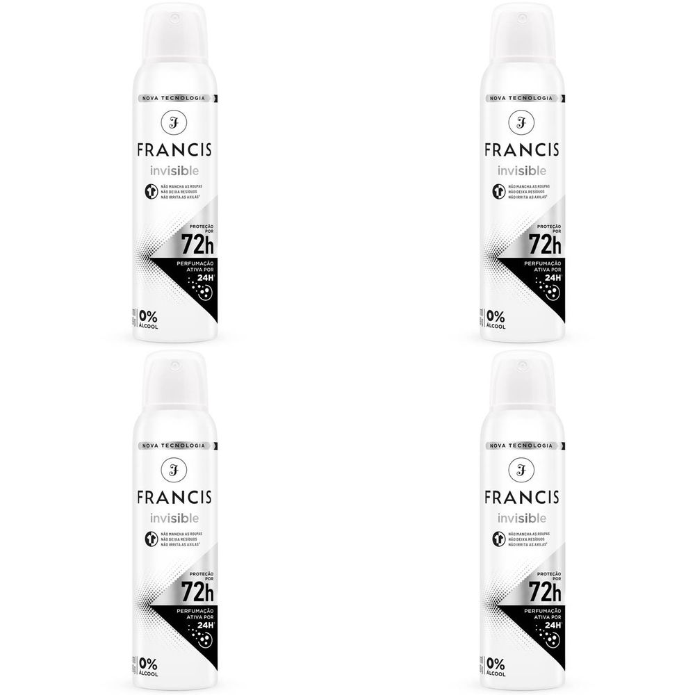 Kit c/4 Unidades de Desodorante Aero Francis 150ml Clássico Preto