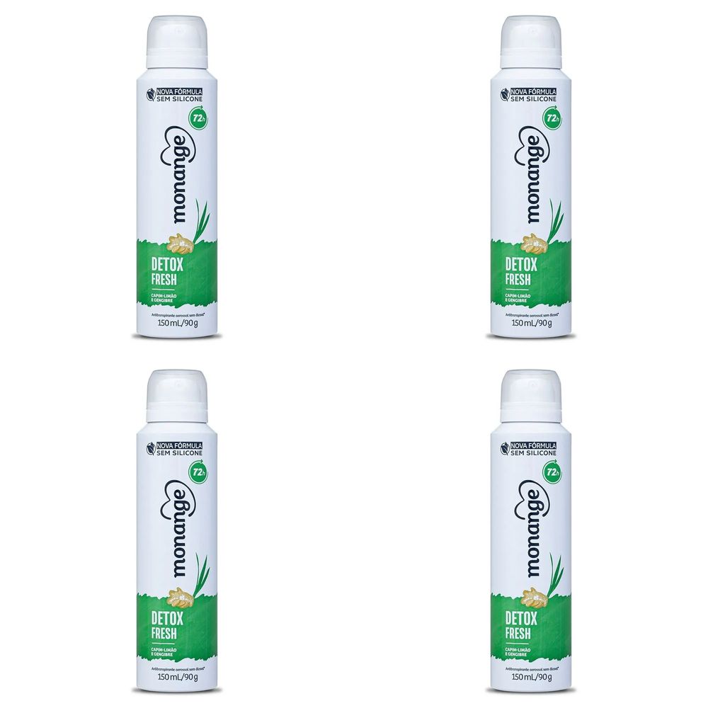 Kit c/4 Unidades de Desodorante Aero Monange 90g Detox Fresh