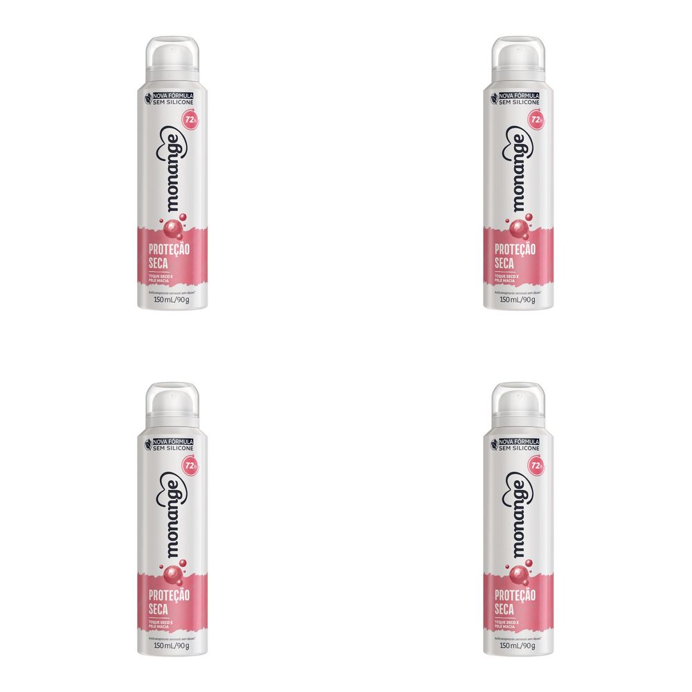 Kit c/4 Unidades de Desodorante Aero Monange 90g Proteção Seca
