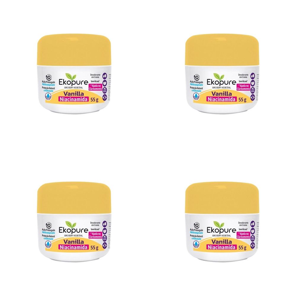 Kit c/4 Unidades de Desodorante Creme Ekopure 55g Vanila