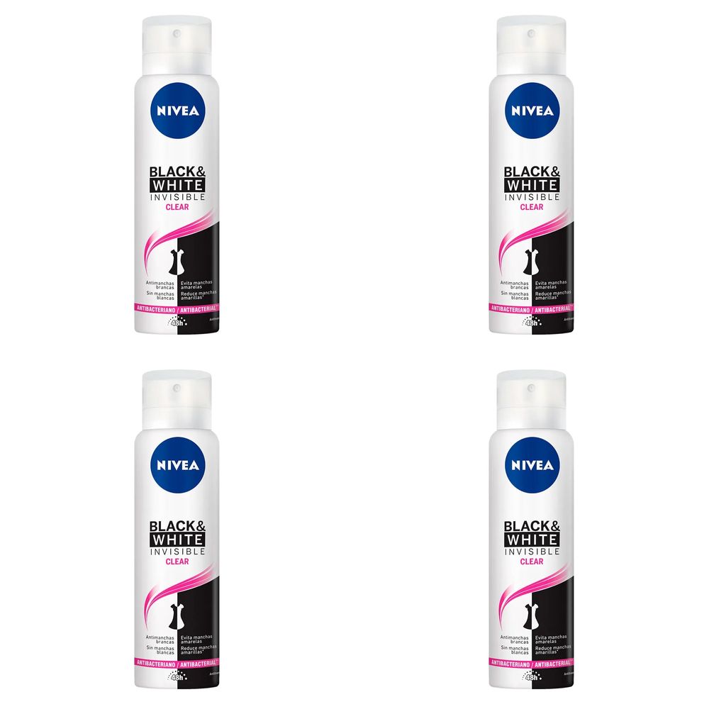 Kit c/4 Unidades de Desodorante Feminino Nivea Invisible For Black & White Clear Aerosol 150ml