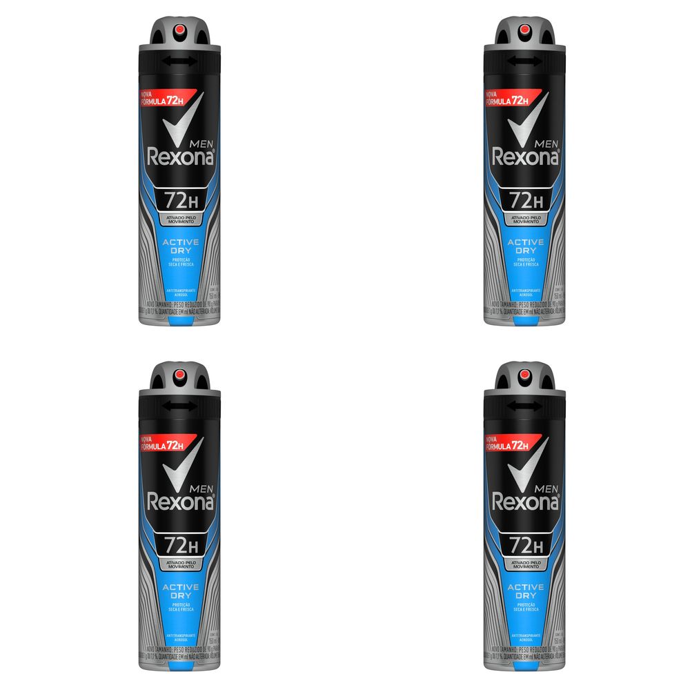 Kit c/4 Unidades de Desodorante Rexona Aerosol 150ml Men Active Dry