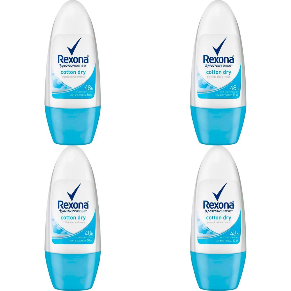 Kit c/4 Unidades de Desodorante Rexona Rollon Antitrans Cotton 50ml