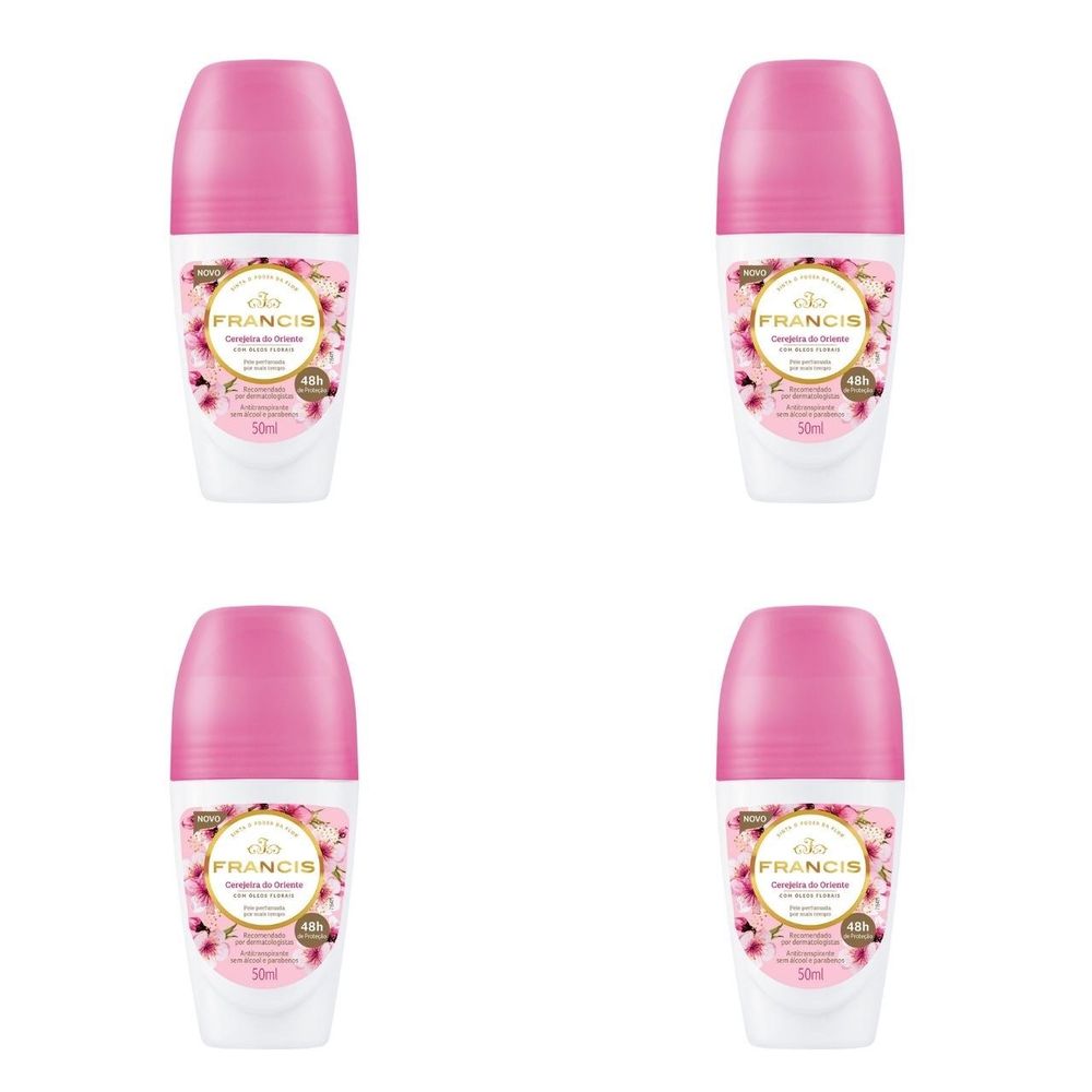 Kit c/4 Unidades de Desodorante Rollon Francis Hydrata 50ml Cerejeira Do Oriente