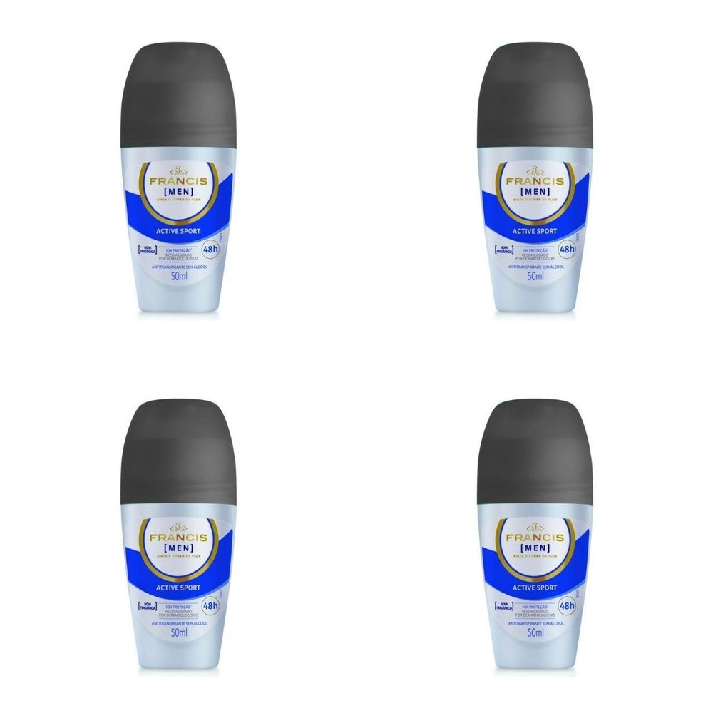 Kit c/4 Unidades de Desodorante Rollon Francis Hydrata 50ml Men Azul