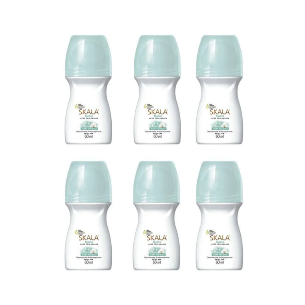 Kit c/6 Unidades de Desodorante Rollon Skala 60ml Suave