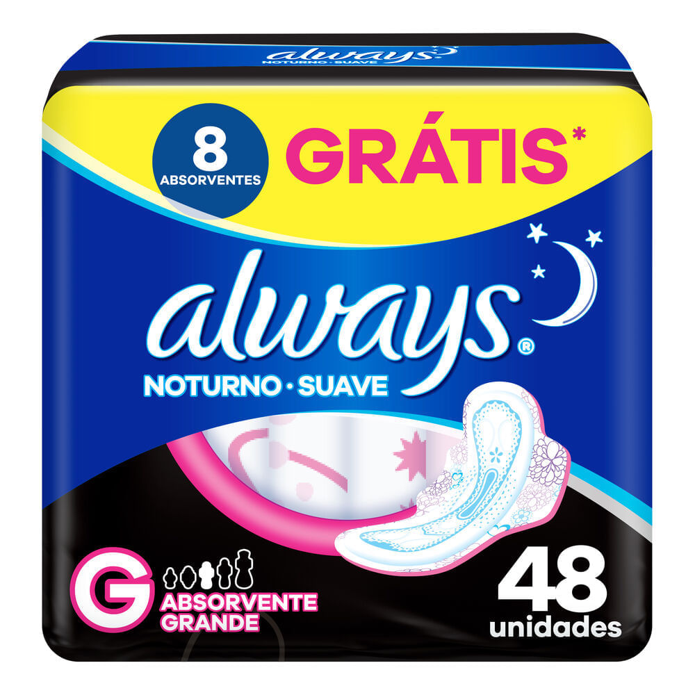 Kit c/9 Absorvente Always Noturno Suave ”G” c/48 Unidades