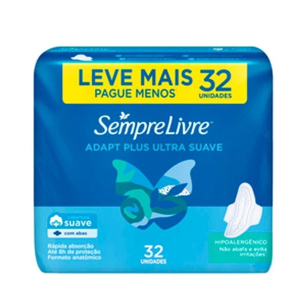 Kit c/9 Absorvente Sempre Livre Com 32 Unidades Adapt Plus Suave Com Abas