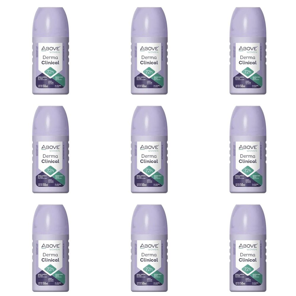 Kit c/9 Unidades de Desodorante Roll-on Above 50ml Feminino Derma Clinical