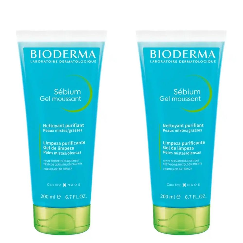 Kit com 2 Unidades de Bioderma Sébium Gel Moussant Gel de Limpeza Antioleosidade Facial 200ml