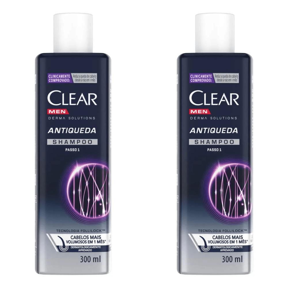 Kit com 2 Unidades de Clear Shampoo Antiqueda Men Derma Solutions 300ml