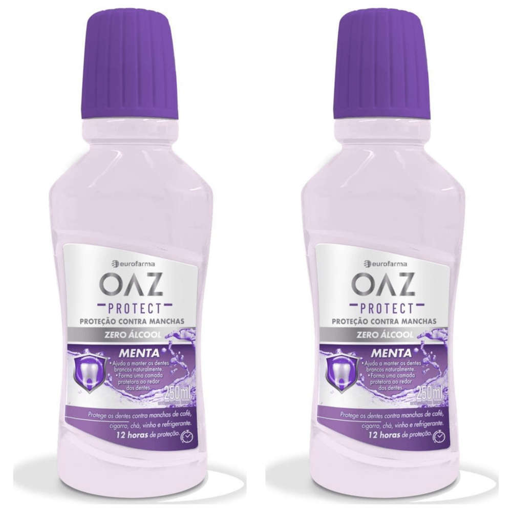 Kit com 2 Unidades de Enxaguante Bucal OAZ Menta Contra Manchas 250ml