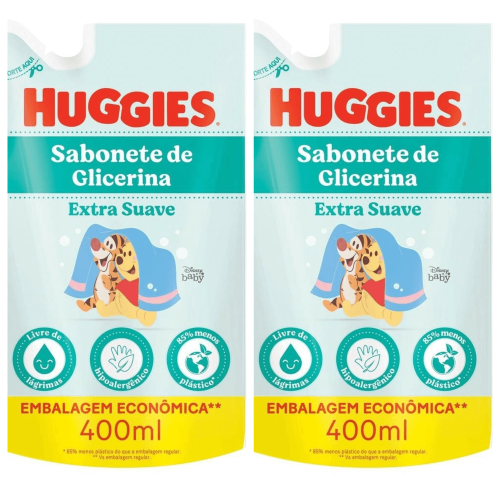 Kit com 2 Unidades de Huggies Refil Sabonete Líquido Glicerina Extra Suave 400ml