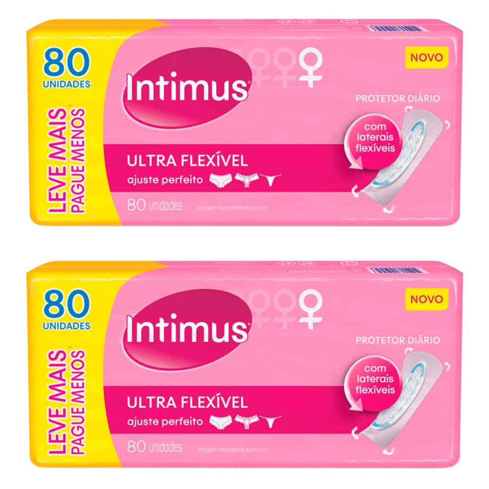 Kit com 2 Unidades de Protetor Diário Intimus Ultra Flexível sem Abas sem Perfume 80 Unidades cada