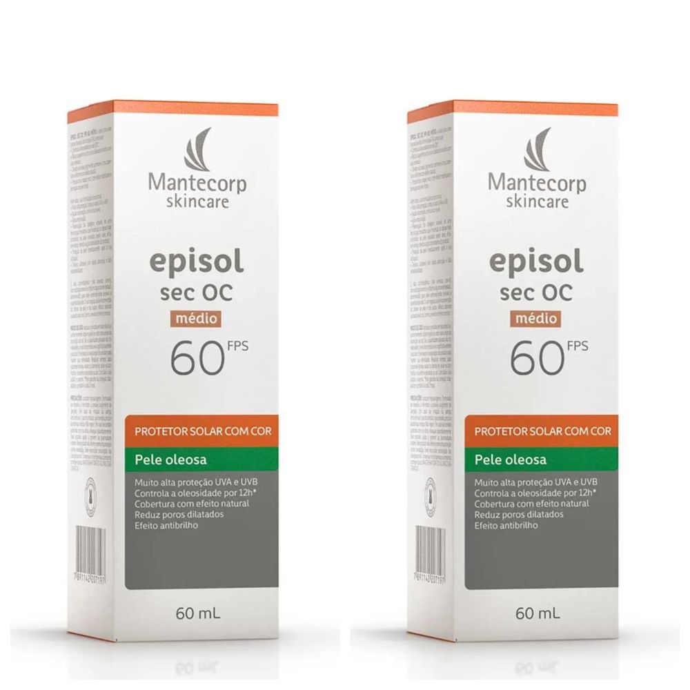 Kit com 2 Unidades de Protetor Solar Facial Episol Sec OC FPS60 Médio 60ml