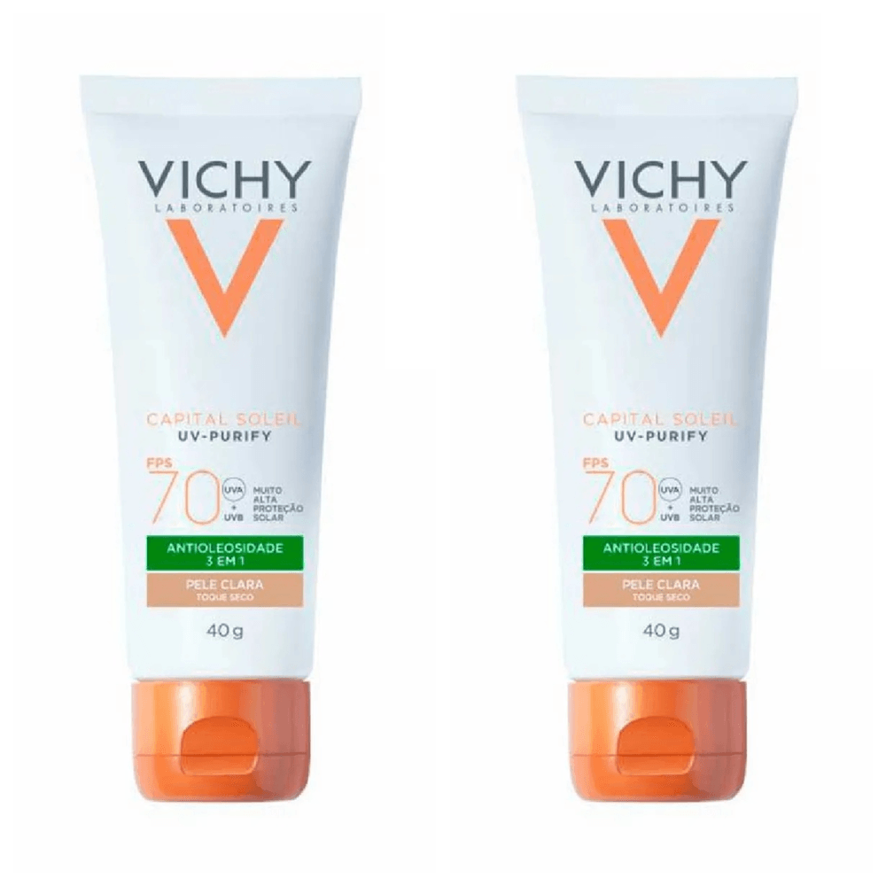 Kit com 2 Unidades de Protetor Solar Facial UV-Purify FPS70 Clara Capital Soleil Vichy 40g