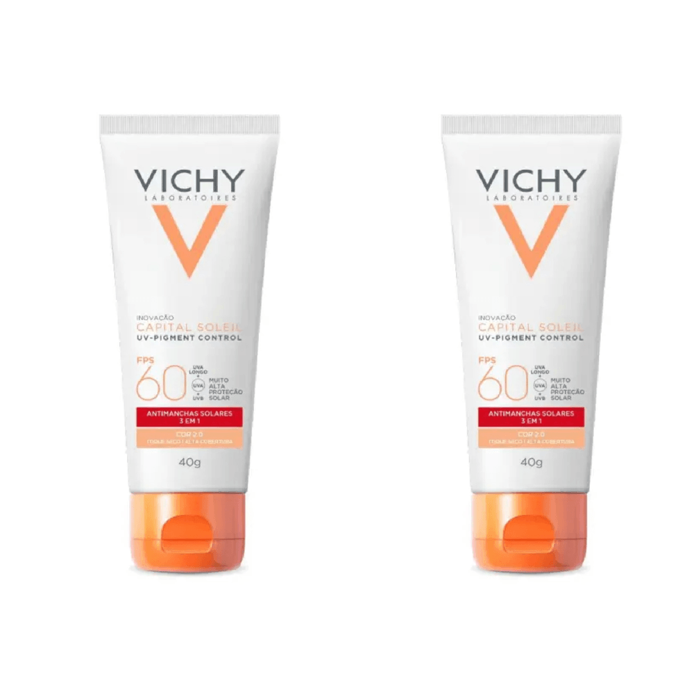 Kit com 2 Unidades de Protetor Solar Facial Vichy FPS60 Capital Soleil UV-Pigment Control Cor 2.0 40g