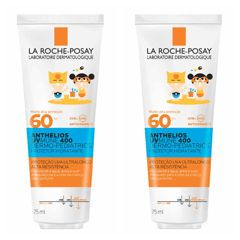 Kit com 2 Unidades de Protetor Solar Hidratante Infantil La Roche-Posay Anthelios UVMune 400 Dermo-Pediatrics FPS60 75ml
