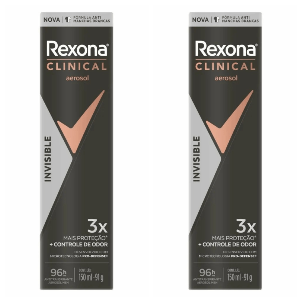 Kit com 2 Unidades de Rexona Clinical Desodorante Invisible Men Aerosol 150ml