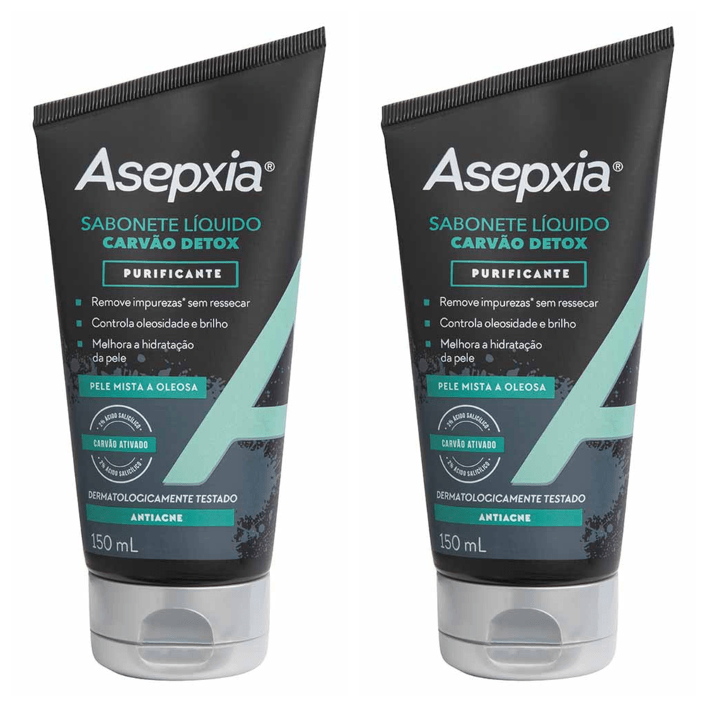 Kit com 2 Unidades de Sabonete Líquido Facial Carvão Detox Asepxia 150ml